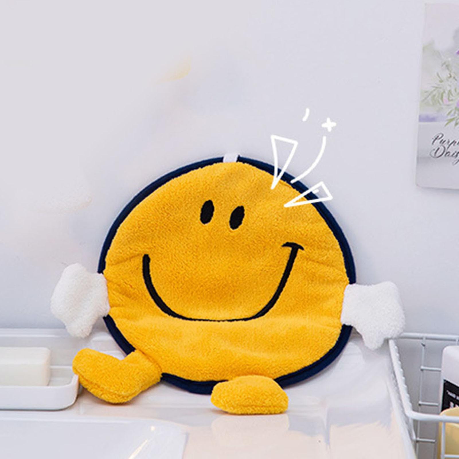 Cartoon Hanging Hand Towel Fast Drying Ultra Absorbent Polyester Fiber Soft Dishcloth for Kitchen Bathroom Smile