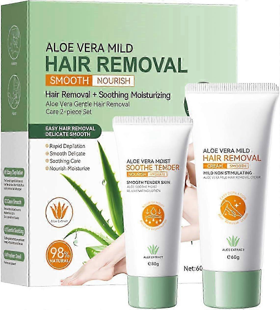 Hair Removal Cream and Moisturising Care Set Aloe-Infused Depilatory Cream, Mild Hair Remover for Smooth and Nourished Skin, Suitable for Legs, Arms