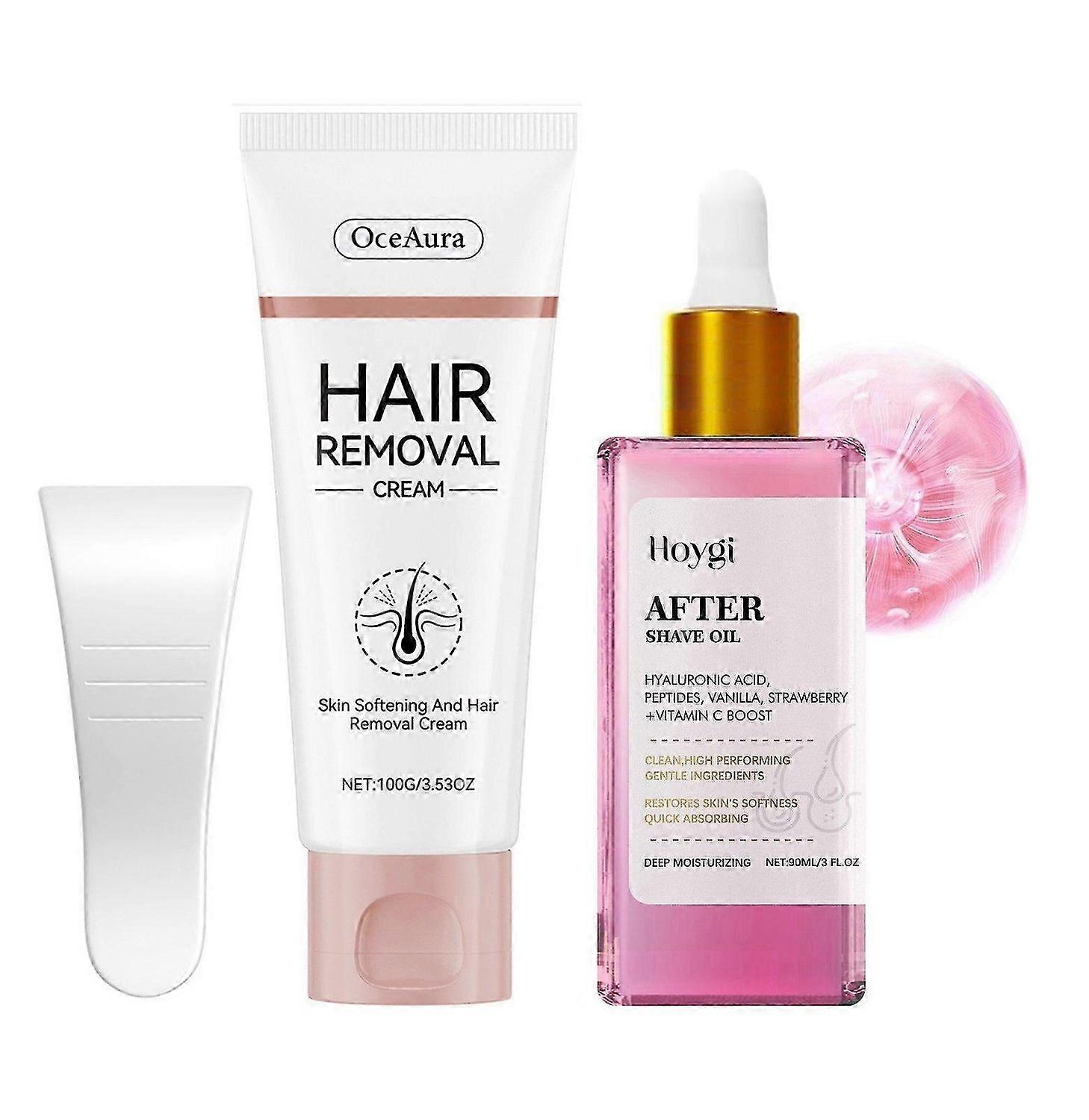 Hair Removal Cream+After Shave Oil Set, Painless and Gentle Hair Removal Soothing & Hydrating, Preve
