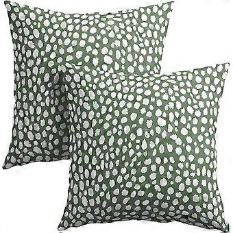 קרם מרווה ירוק נקודות כיסויי כרית 20x20 אינץ ' עיצוב בוהו מנוקד זרוק ציפית כרית סט של 2 כריות הדפס מודרני טרנדי כיסוי כרית פשתן כותנה