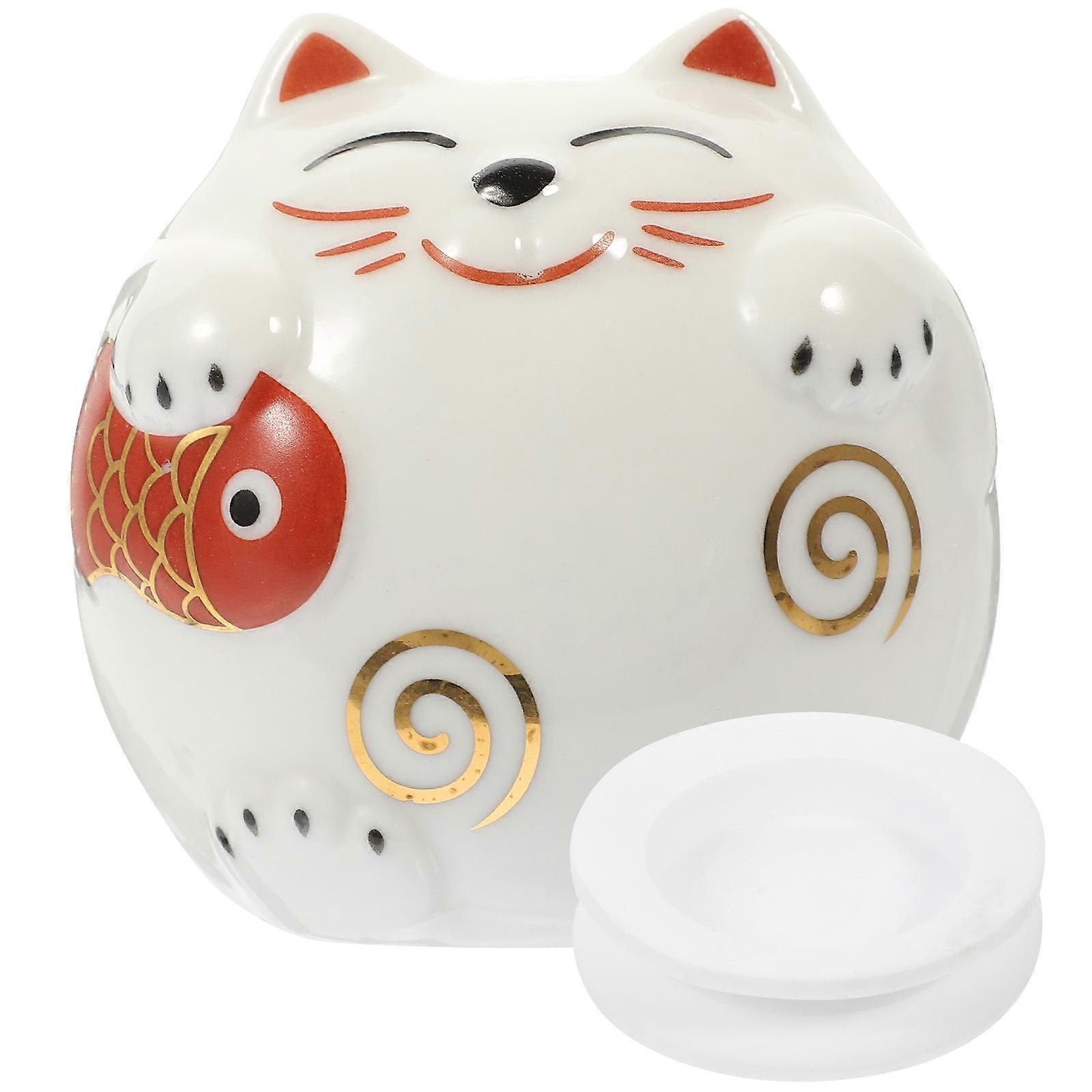 Ceramic Piggy Bank Cat Shaped Money Saving Jar Simple and Cute Design Home Decor White 7X7X6.5CM 1Set