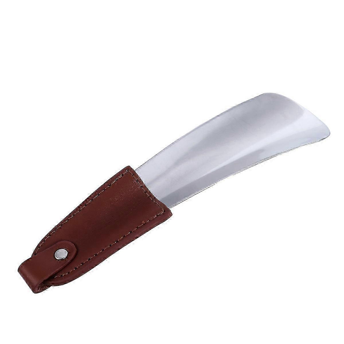 Stainless Steel Shoe Horn with Leather Strap Metal Leather Shoe Horn for Men Women Kids Dark Brown