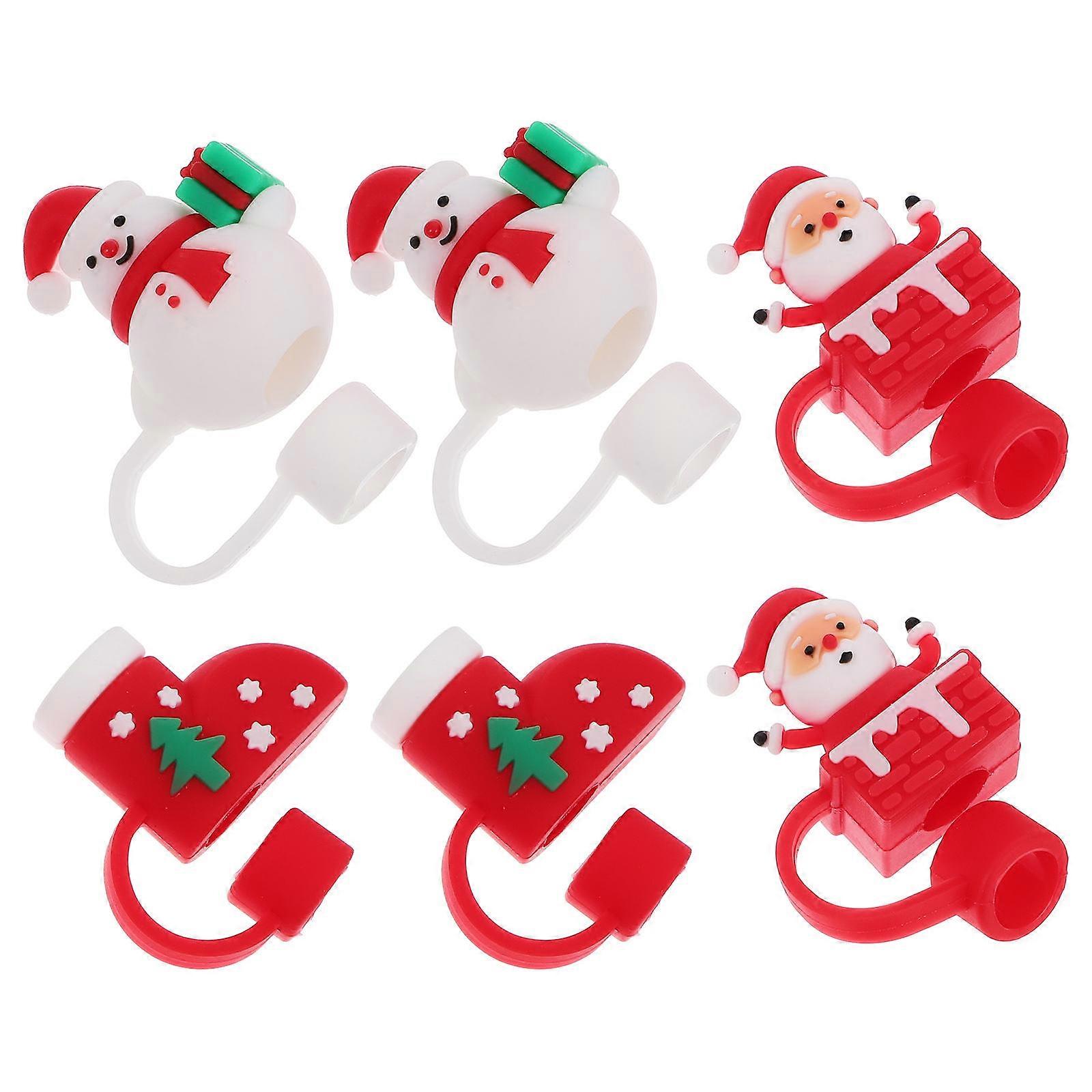 Silicone Christmas Straw Toppers Anti-Spill Dust-Proof For Drinking Straws Santa Claus Pattern 6Pcs