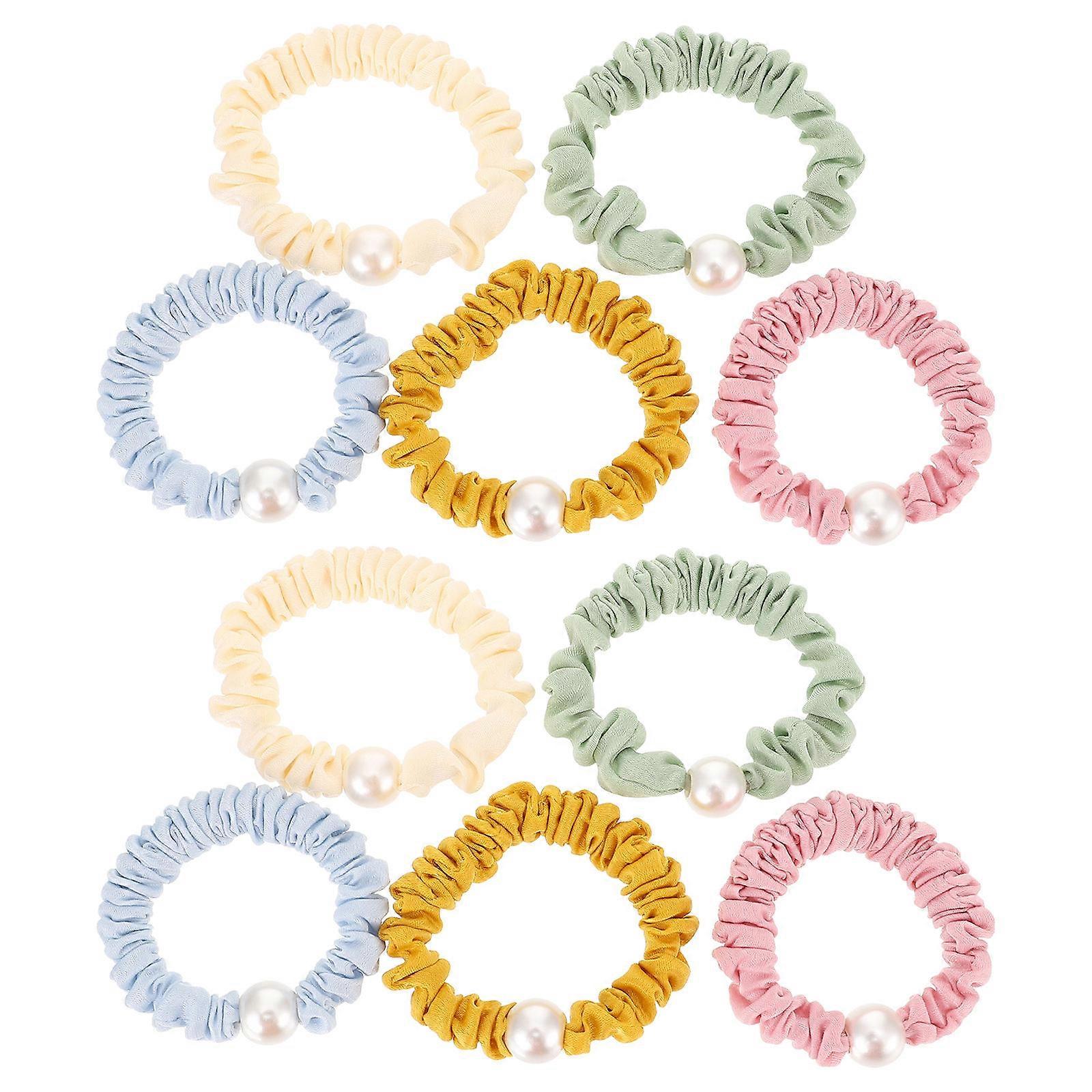 Pearl Hair Ties 10pcs Elastic Hair Bands for Women Gentle Ponytail Scrunchies Wrist Accessories for Daily and Party Use
