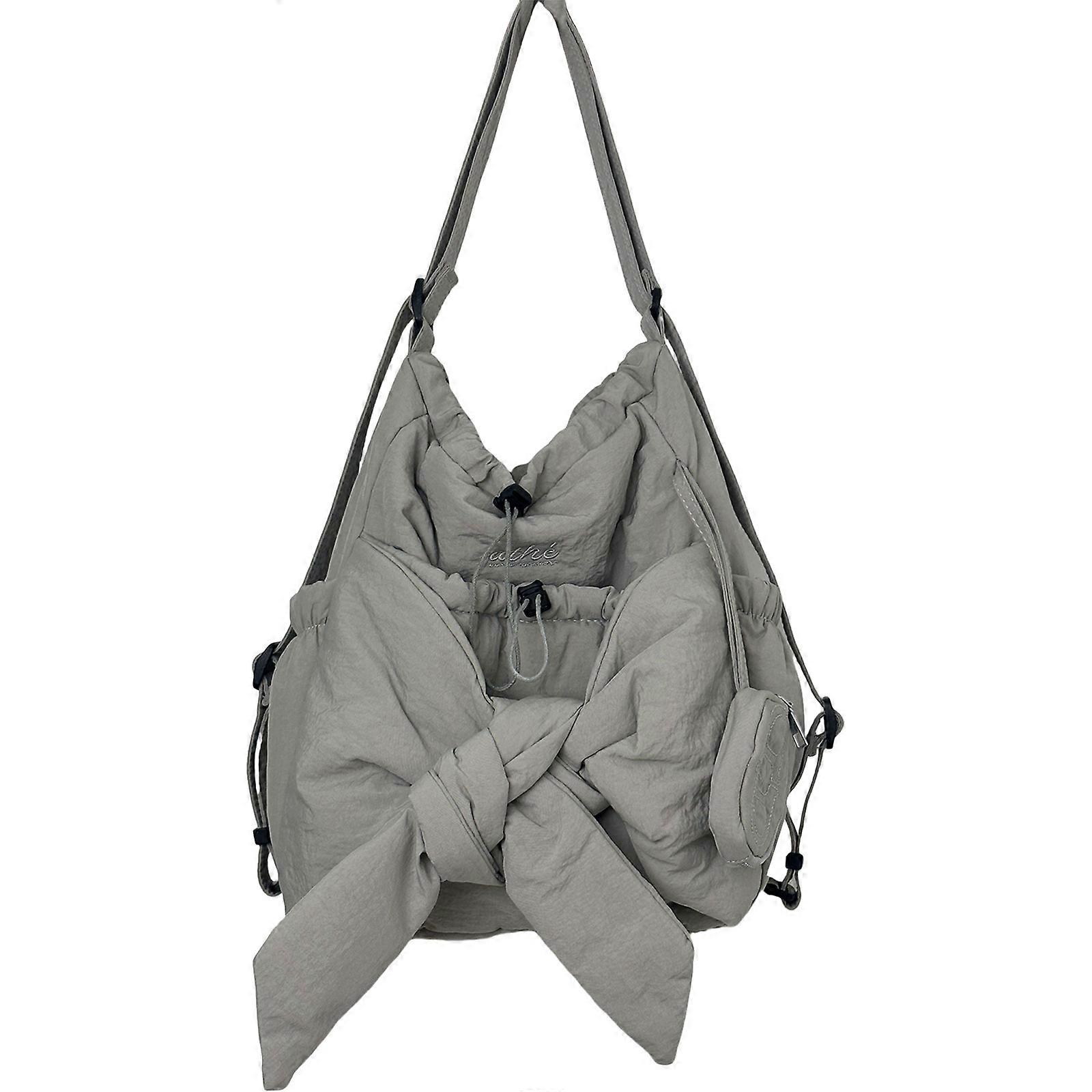 Fashion Bows Decorated Backpack Large Storage Nylon Shoulder Bag Casual Rucksack for Work School or Travel Gray