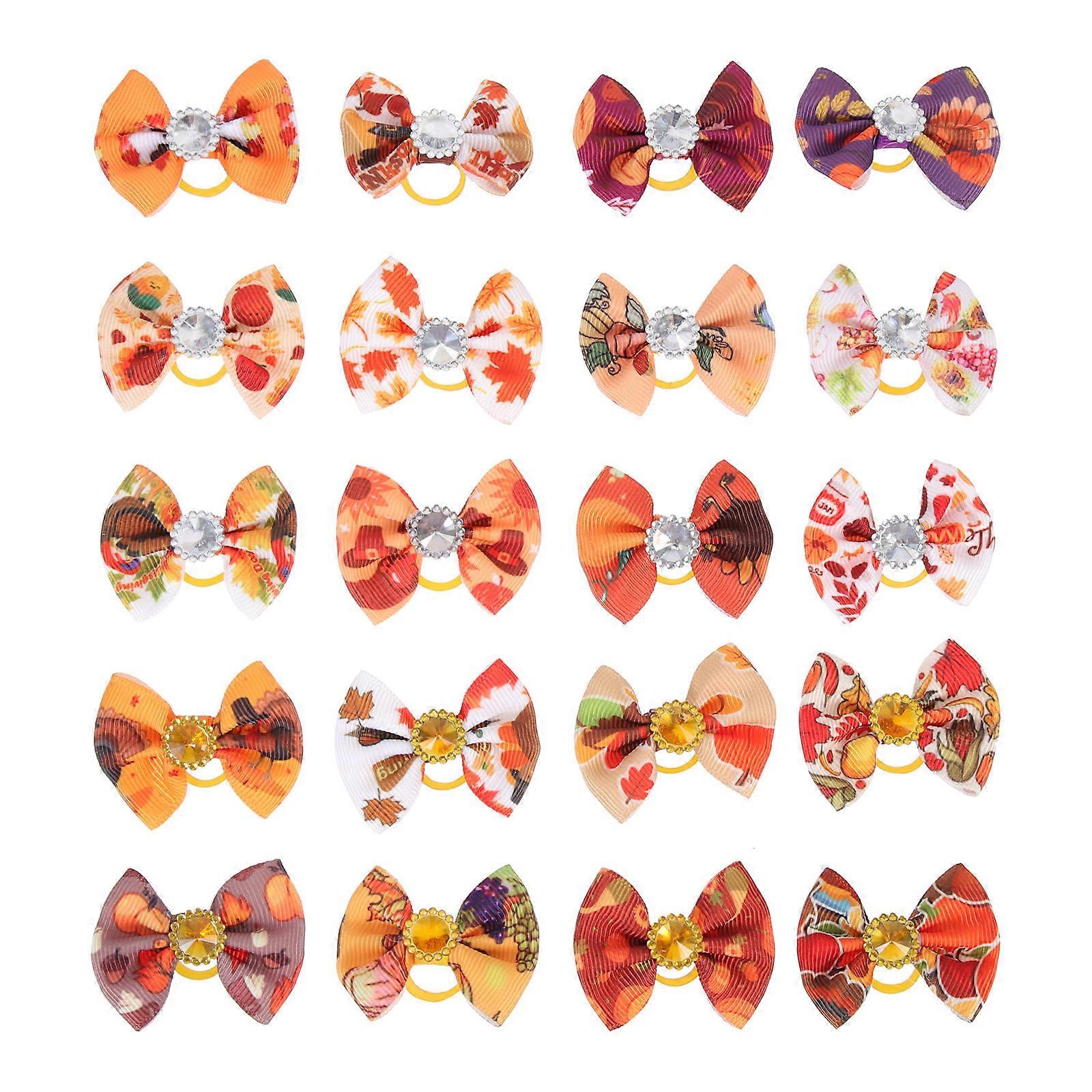 Pet Hair Bows Elastic Bow for Wearing 20Pcs Ribbon Dog Bow Mixed Style