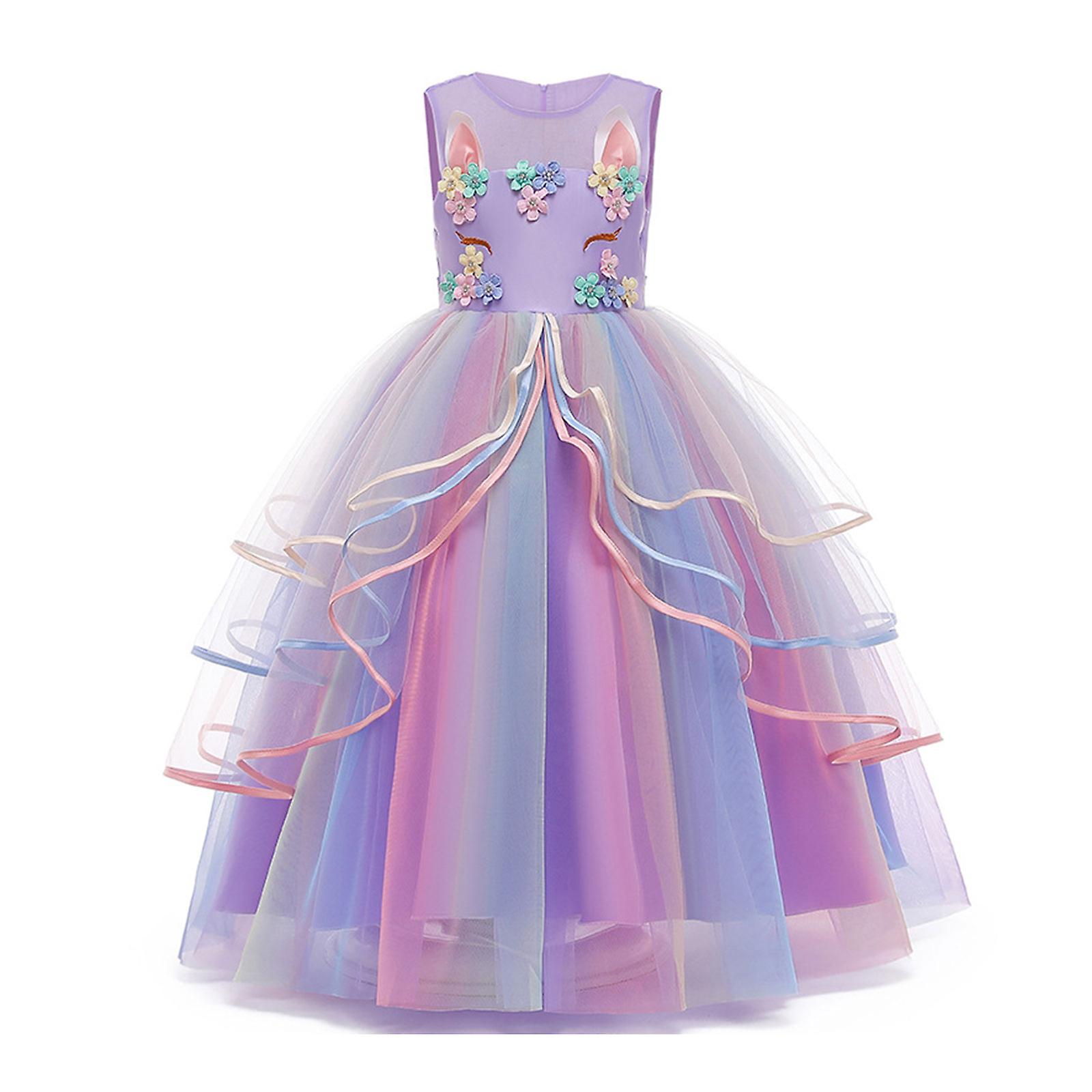Rainbow Lace Princess Party Dress For Girls, Special Occasion Ball Gown