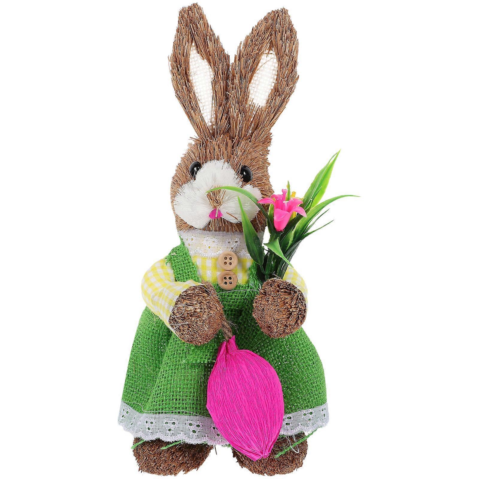 Straw Woven Rabbit Decoration Easter Bunny Sculpture Desktop Woven Bunny Decor