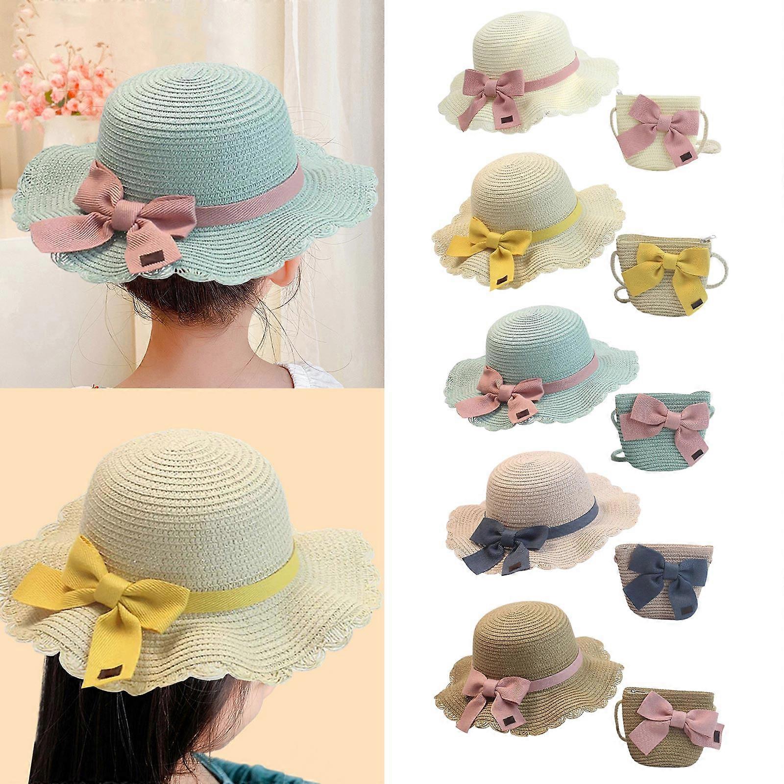 Straw Panamas Hat Shoulder Bag for Girl Sun Protective Vacation Beach Hat Kids Floppy Hat Travel Hat Girls Mini Handbag White