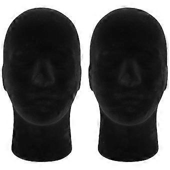 Polystyrene Black Foam Men Model Mannequin Head Dummy Stand Shop Display Hat, 2 x BLACK