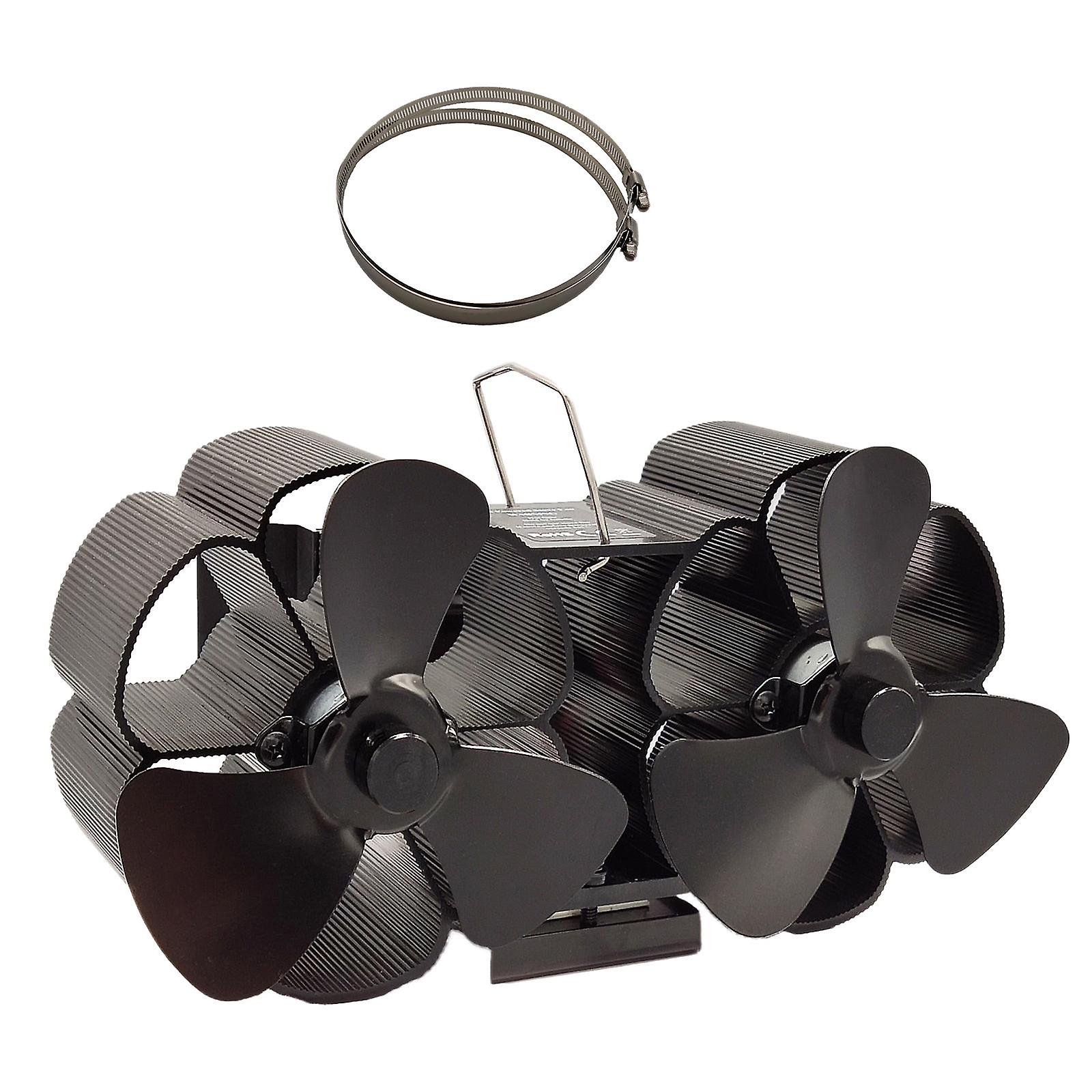 Dual Head 6 Blades Heat Powered Wood Stove Fan Wood/Log Burner Fireplace Fan