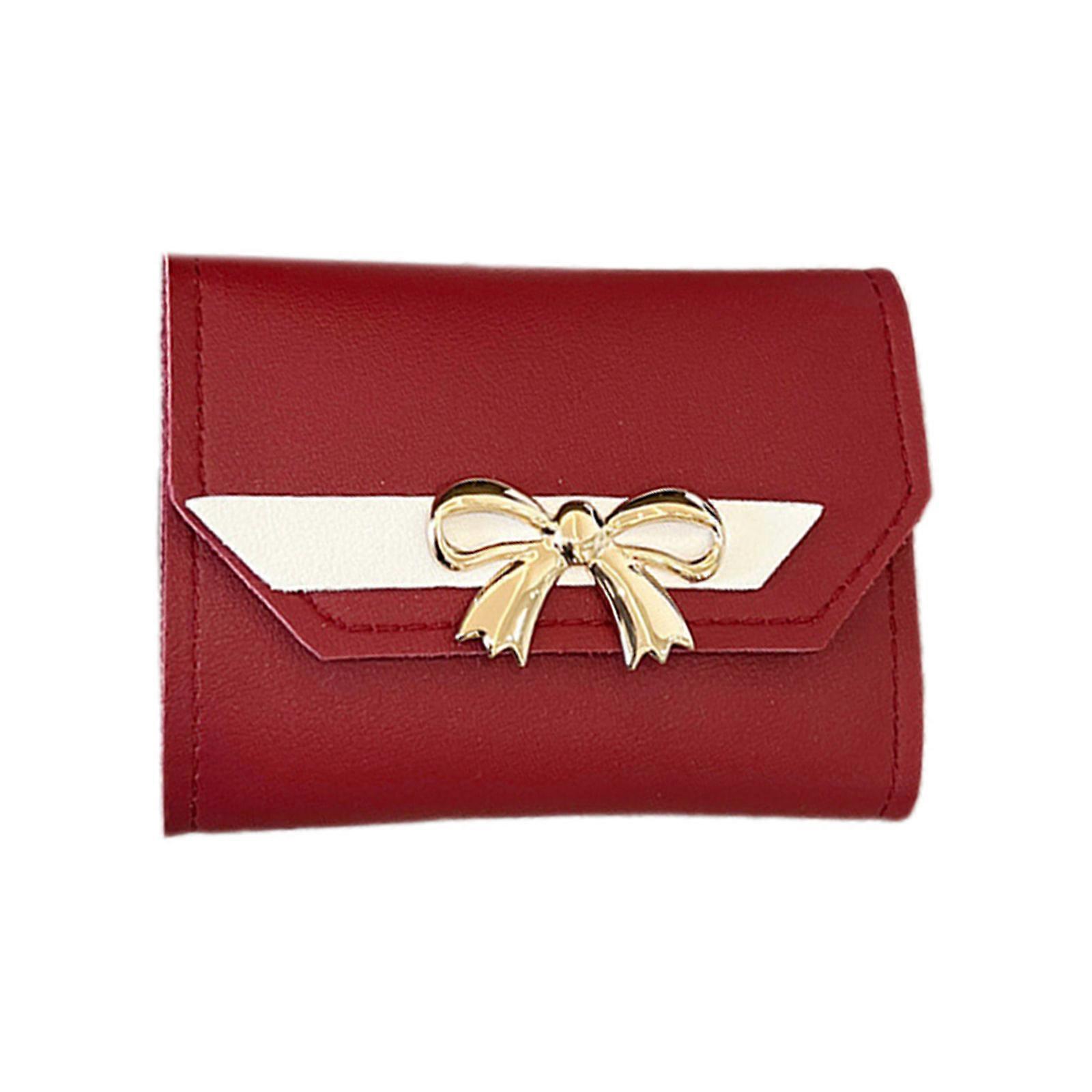 Multi Slot Wallet Woman Girl Leather Clutch Bag Coin Purse Short Type Trifold Cash Holder Credit Card Bank Card Holder Red