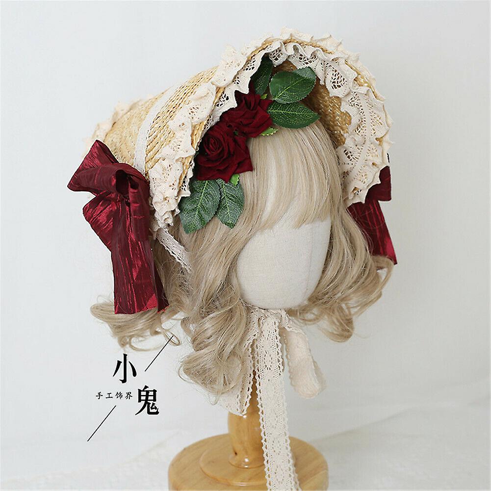 Multi Colors Lolita Straw Bonnet Hat Handmade Mori Girl Gorgeous Elegant Princess Lace Flower Bnt Cosplay Headpiece