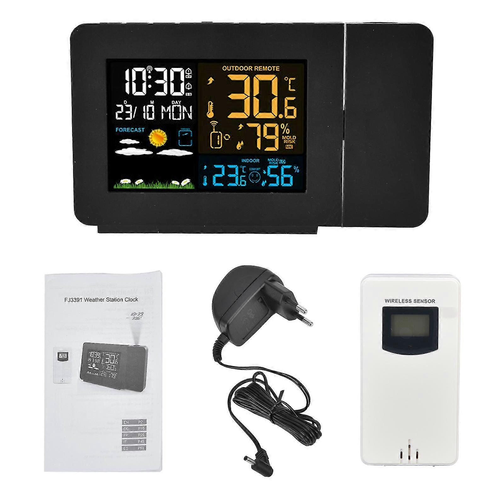 Multifunctional Projection Weather Station Clock Indoor Outdoor Temperature Humidity Display Colour Screen EU Plug 100-240V No Batterie