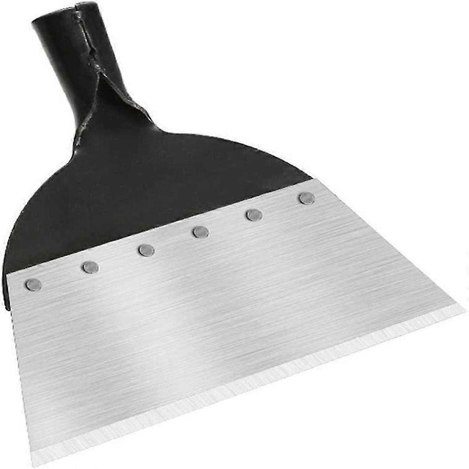 The multifunctional outdoor garden cleaning shovel can not only clean garden moss and sharp manganese steel blades, but also clean stubborn stickers such as walls, floors and sheds. Highly wear-resistant carbon steel - The blade is made of highly wear-resistant, thickened manganese hacksaw blade steel, which is hardened by a special process, firm and durable and easy to scratch. Multifunctional cleaning - The utility model refers to a practical multifunctional shovel that is used for quick handling of garden problems, weeding and mosing, cleaning farmhouse droppings, de-icing, removing small advertising stickers on floors and walls, etc. Durable - The splicing shovel head is reinforced with multiple rivets that do not easily fall off and break, and has a longer service life. Easy to assemble handle: the solid welding joint on the mounting handle is suitable for a variety of purposes. Wooden handle hole and nail bar are set to facilitate the installation of the handle.
