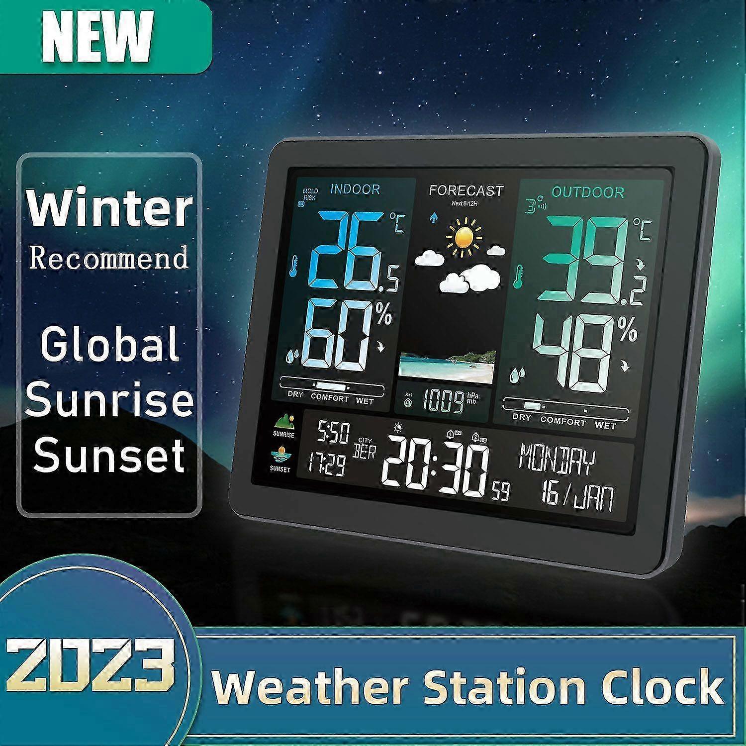Multi-function Professional Electronic Weather Station Intelligent Color Screen Clock Temperature Humidity Barometric Pressure Moon Phase Weather Fore