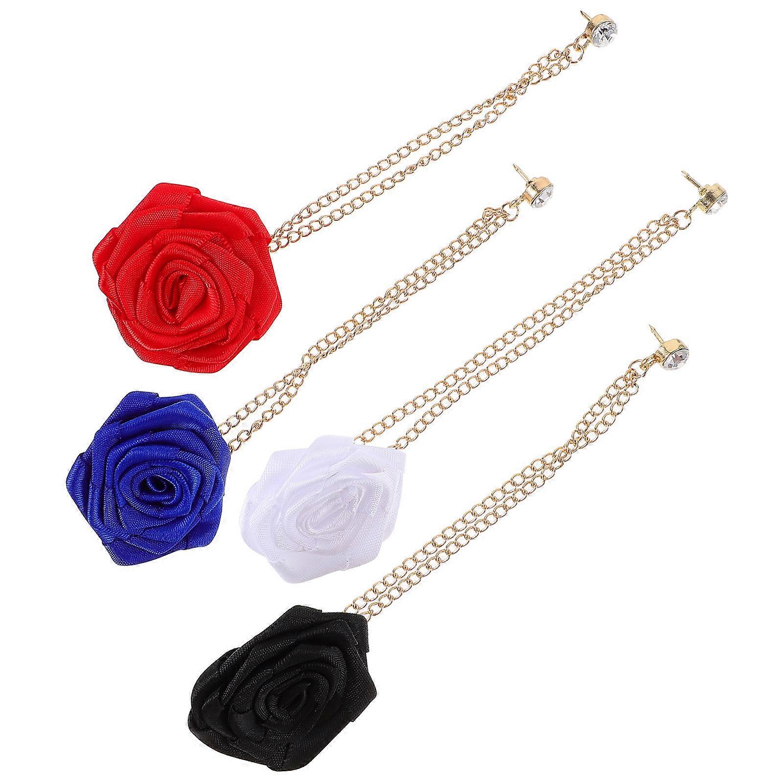 Rose Boutonniere Flower Brooch Tassel Chain Tie For Men Women Clothing Accessory 4Pcs