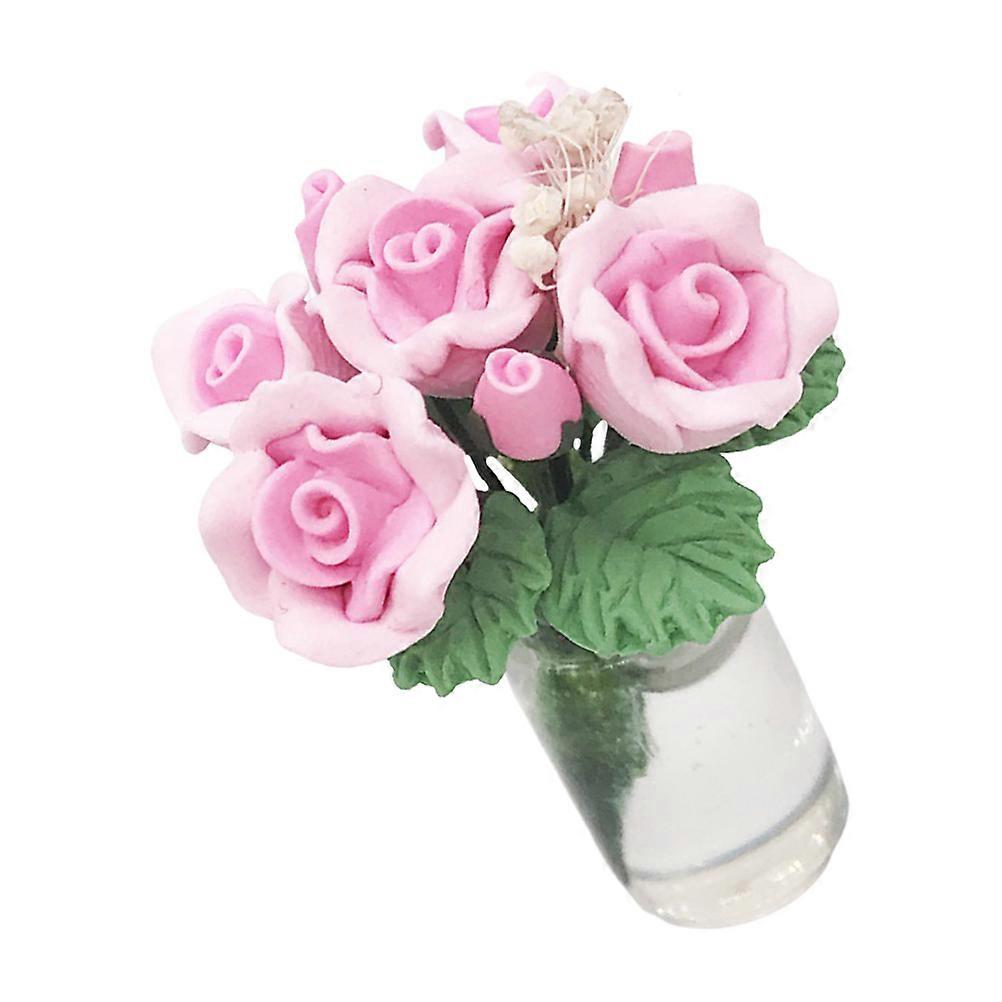 Rose Potted Model Miniature Potted Flower Model Home Decoration Realistic Shape Resin 1Set