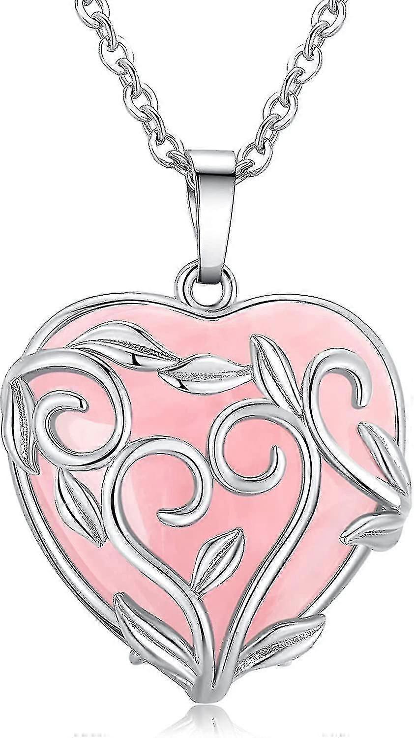 Rose Quartz Healing Crystal Stone Necklace Heart Shaped Gem Flower Leaf Packaging Pendant