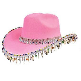 Adjustable Tassels Hat Delicate Rhinestones Hat Various Colorful Hat Beautiful Multifunctional Props Unisex Fashion Hat Pink
