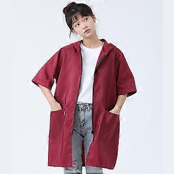 Zippers Short Sleeve Waterproofs Apron Jackets Season Kitchen Cooking Apron Smock Work Wear with Big Pockets Women Men XL wine red