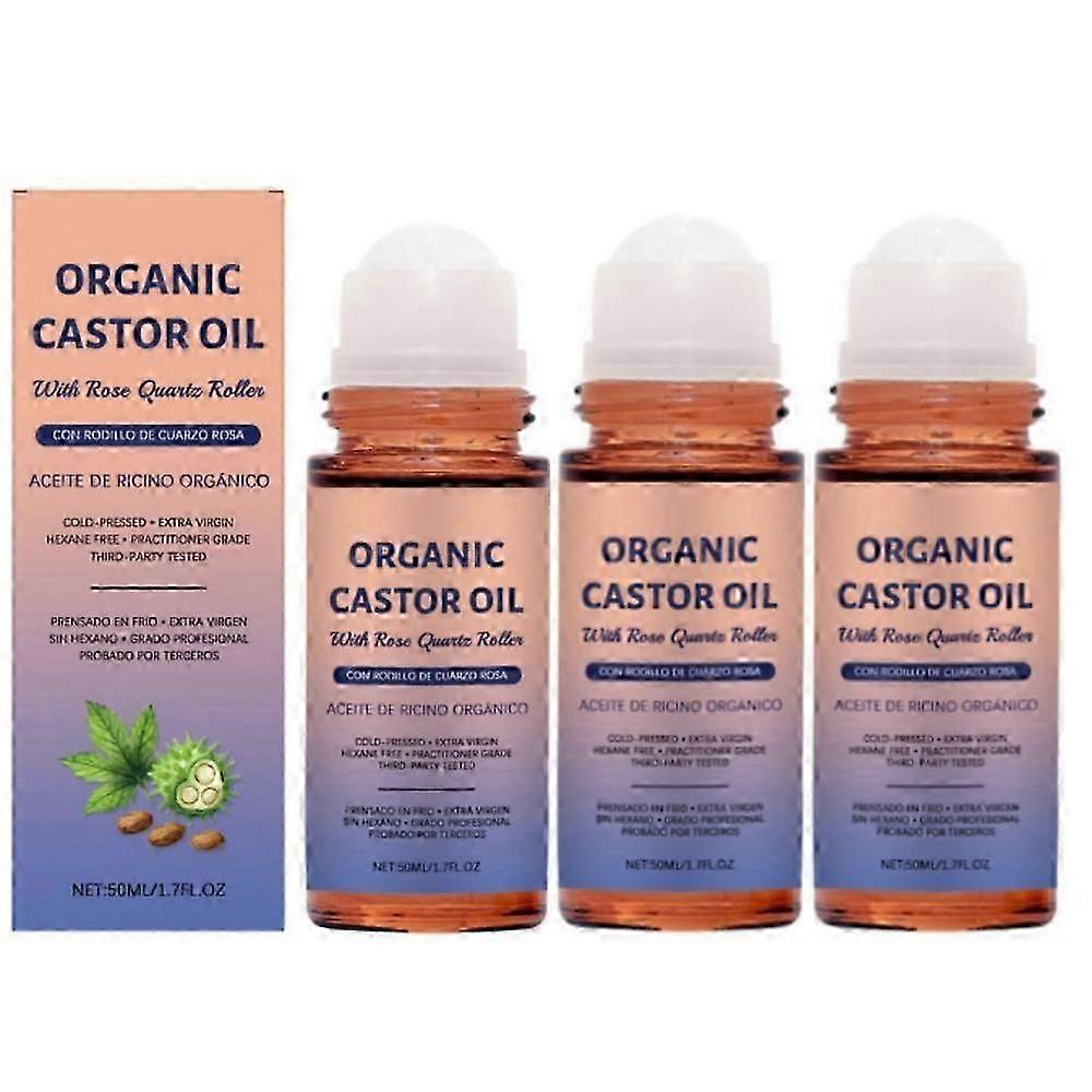 Organic Golden Castor Oil Roll-On with Rose Quartz, Pure for Skin,Brows & Lashes and less mess Castor Oil Packs,Hexane-Free,Cold-Pressed 50ml