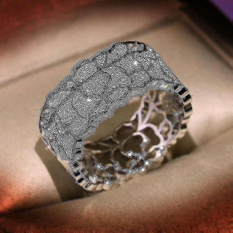 Retro white zircon small fresh pattern lace hollow closed ring for female creative personality ring jewelry gift