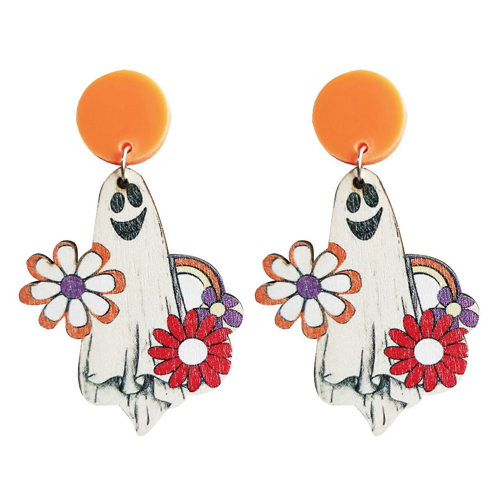 Retro Style Halloween Thanksgiving Earrings Colorful Flowers Pumpkin Ghost Spider Earrings Ladies Girls Holiday Gifts