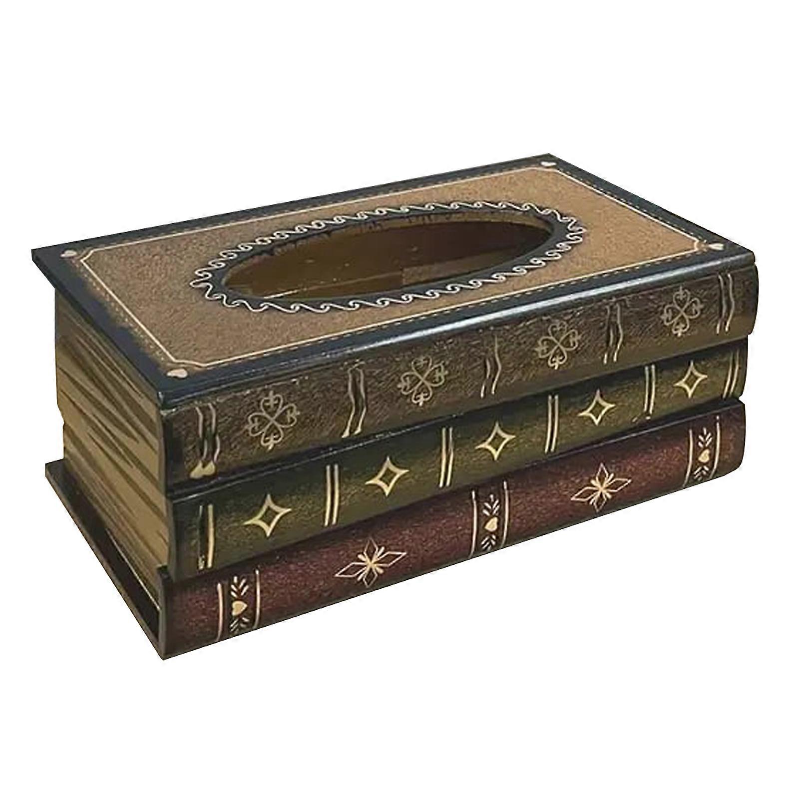 Retro Wood Book Shape Tissue Box Rectangle Napkin Paper Holder Storage Case