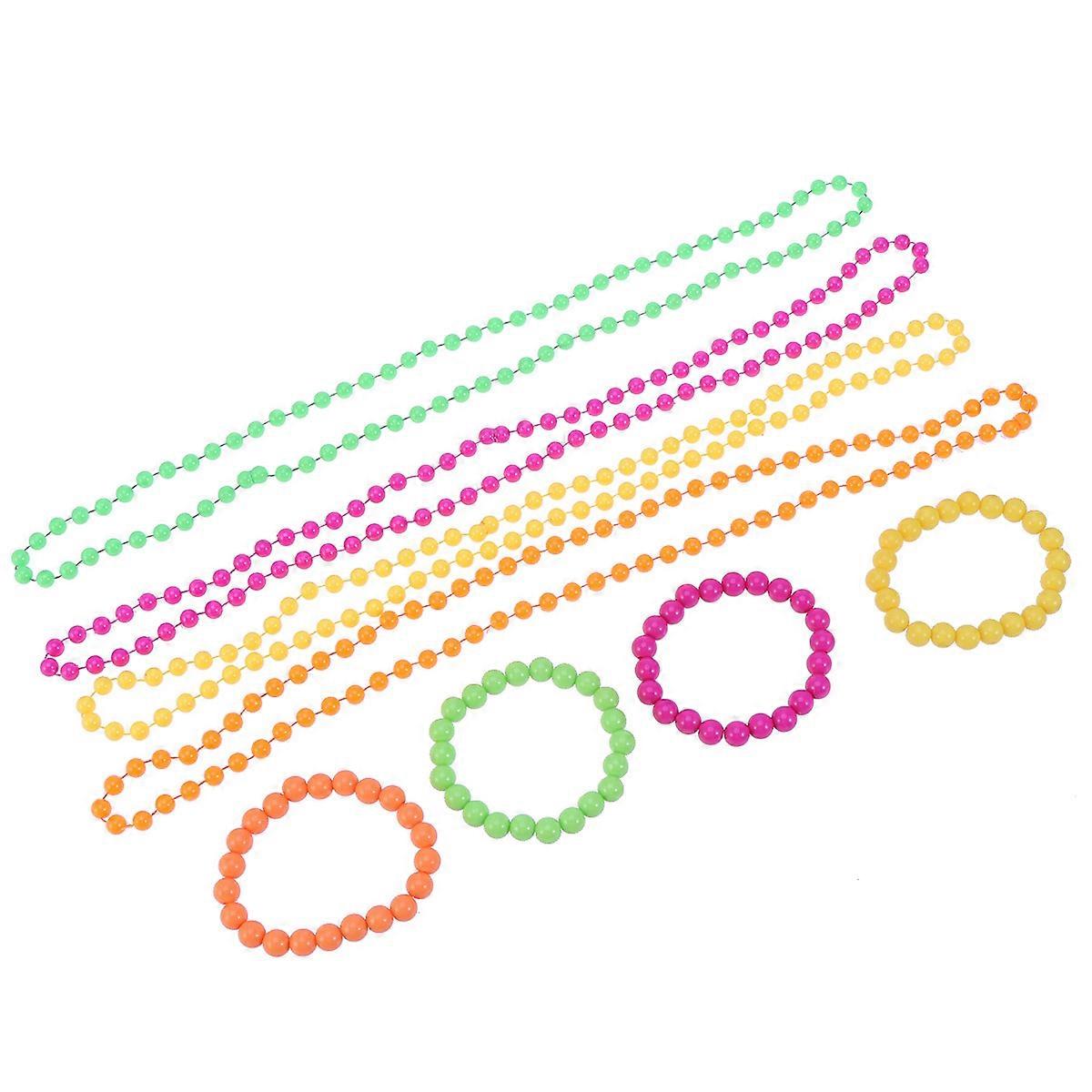 Retro 70s 80s Theme Beaded Necklace and Bracelet Set Plastic Material Neon Jewelry for Women Daily Wear 16Pcs