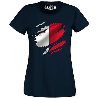 ריאליטי גליץ' קרוע דגל מלטה חולצת טריקו לנשים