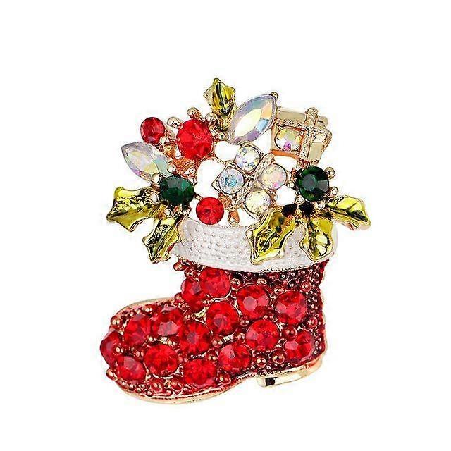 Rhinestone Christmas Sock Brooch for Women Christmas Gift Pins Office Party Friend Gifts Jewelry Charms Creative Little Accessories