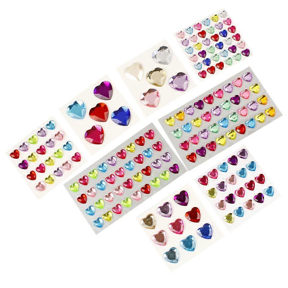 Rhinestone Stickers Acrylic Heart Shaped Colored Love Diy Craft Self-Adhesive Long-Term Sticking 8 Sheets
