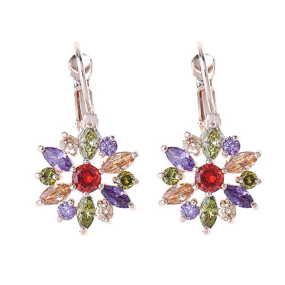 Rhinestone Teardrop Earrings Colorful Floral Design Party Accessory Copper Material present Option for Women 3x2x1cm 1Pair