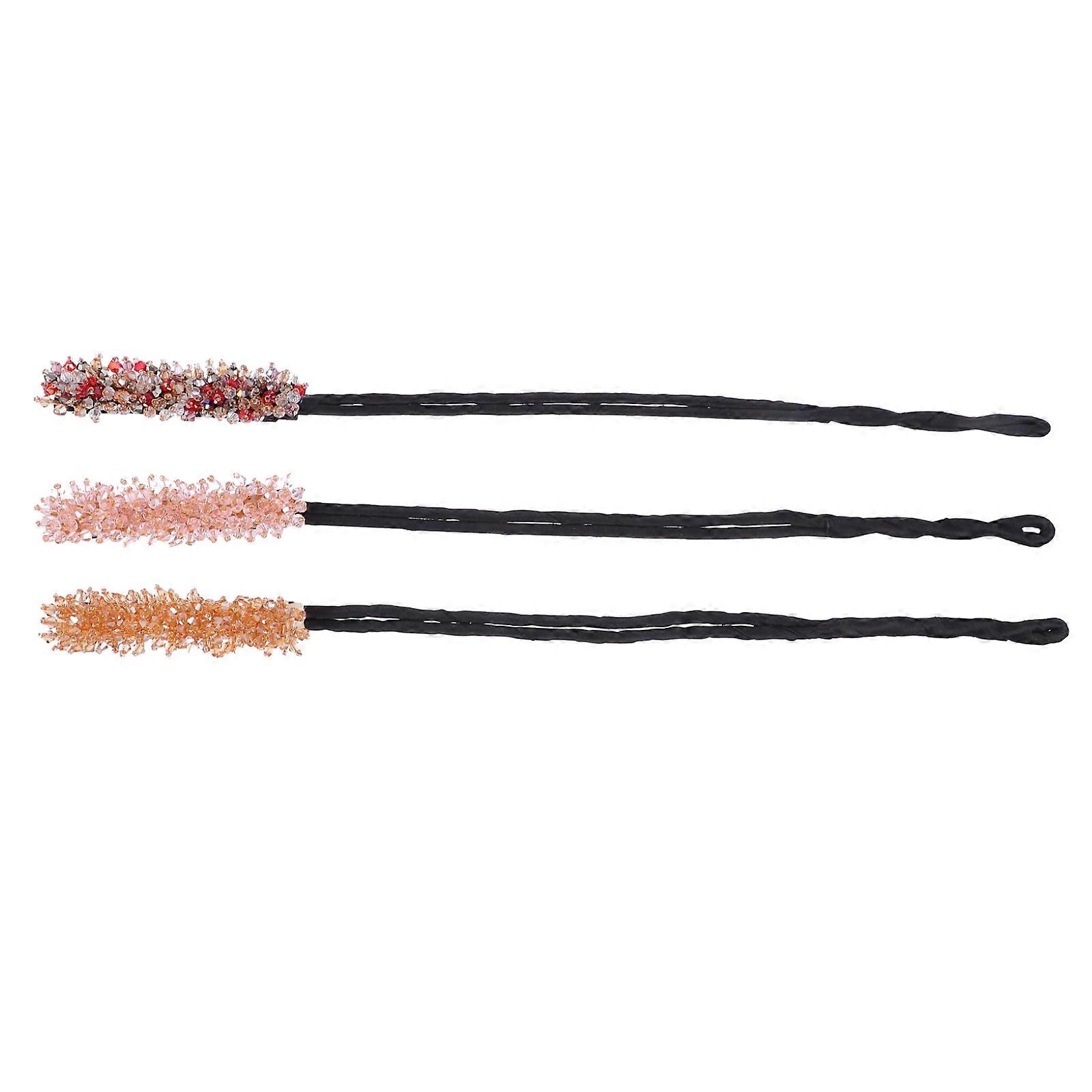 Rhinestone Hair Bun Maker for Women DIY Hairstyle Tool with Crystal and Wire 3 Pieces