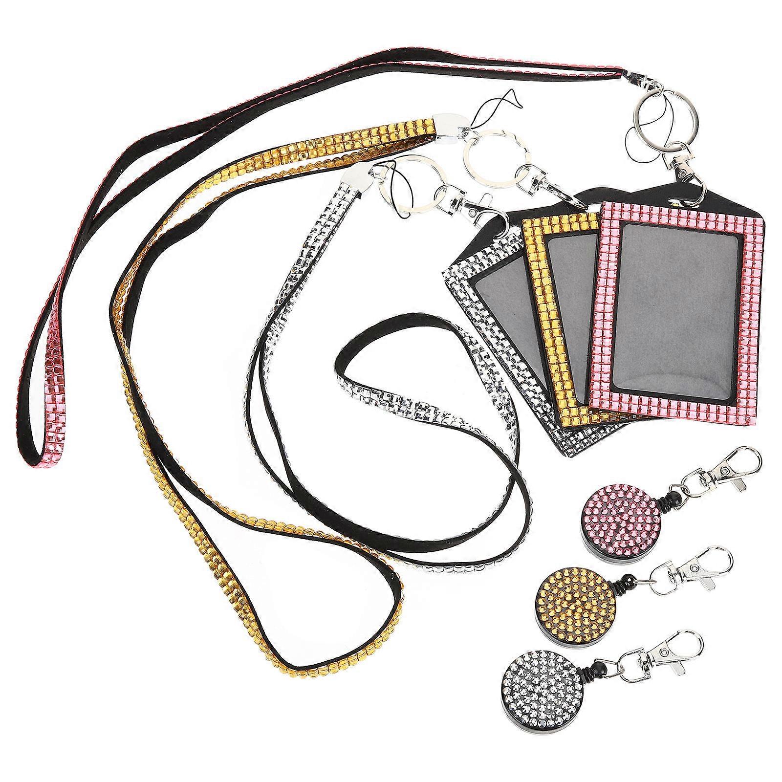Rhinestone Badge Holder Key Card Reel for Women Assorted Color Fashion Accessories 3pcs