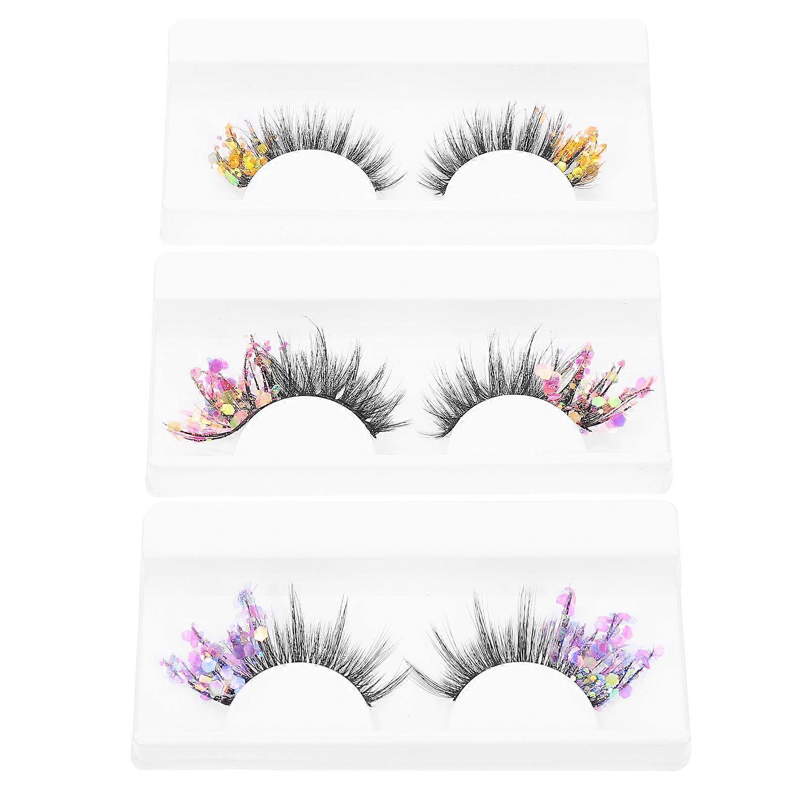 False Eyelashes 3Pairs for Decoration Colored Glitter Fluorescent 3D Fake Lashes