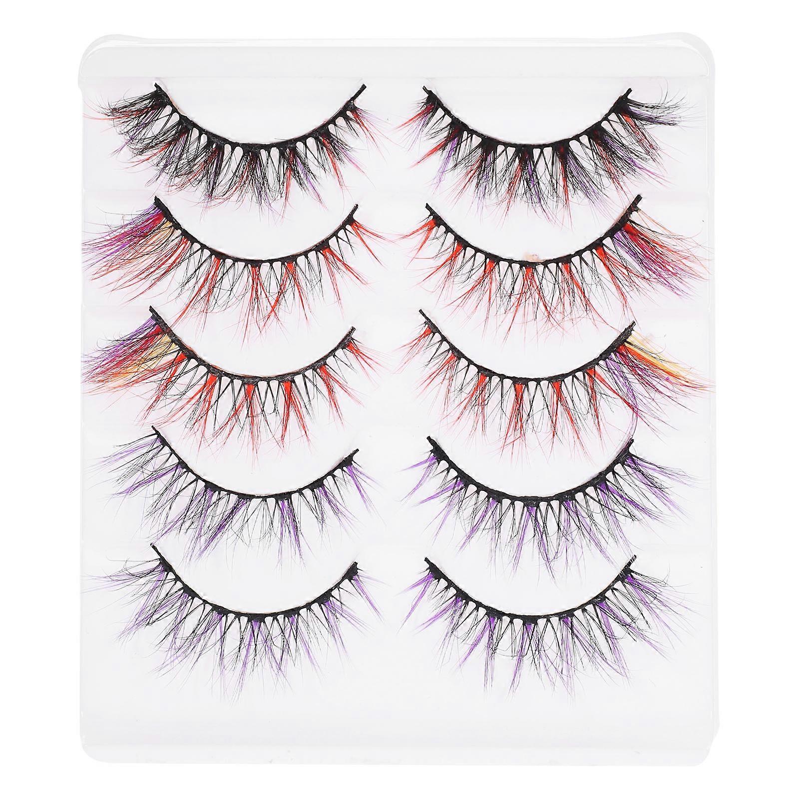 Eyelashes with Color 5 Pairs of Cosplay Fake Eyelashes for Women Multi-layered Dense Eye Makeup Long-lasting