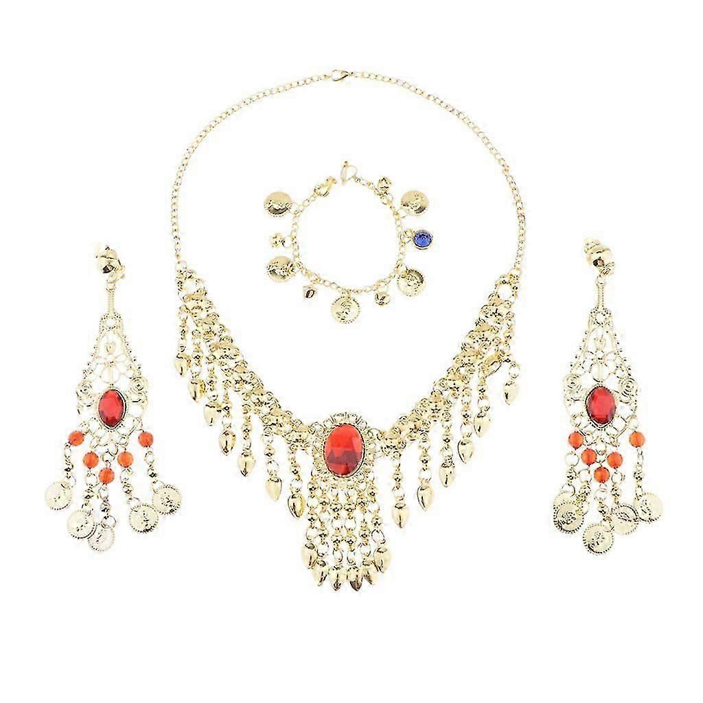 Belly Dance Ethnic Jewelry Set Necklace Nose Chain Earring - A , as