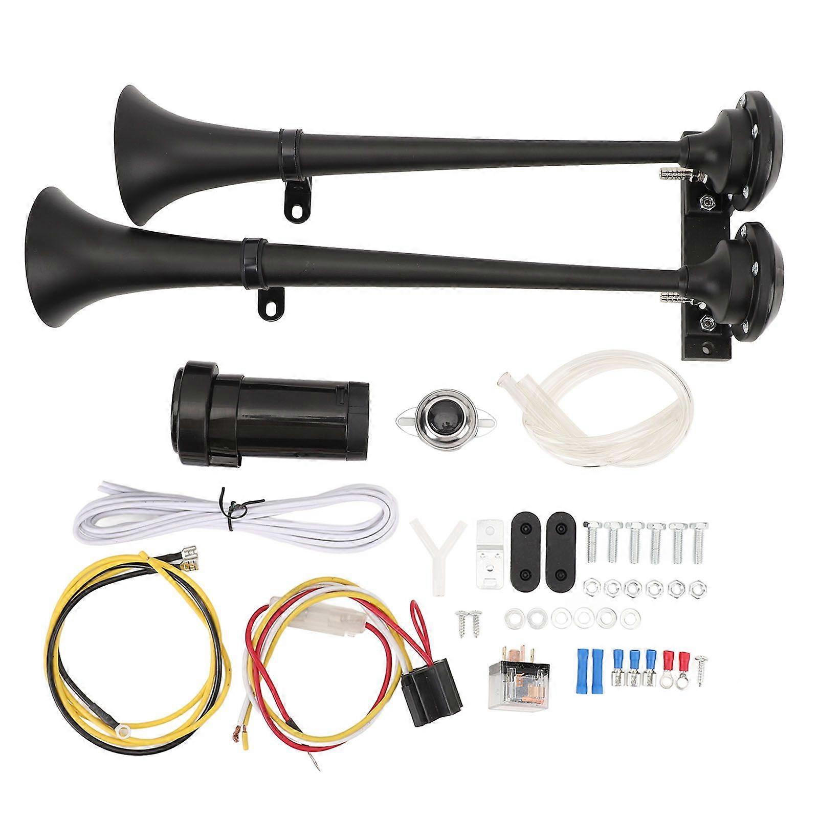 Train Air Horn 2 Trumpet Stainless Steel 150dB Loud Sound Universal Fit DC12V for Boat Yacht Car RV Truck Black MK1440