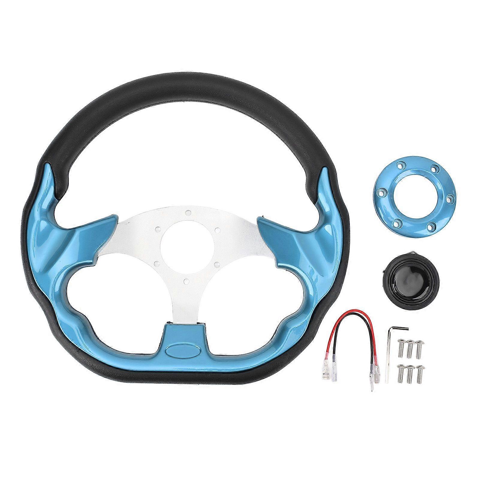 Car Steering Wheel 13in PU Stylish Look Impact Proof Enhanced Grip Easy Installation Racing Steering Wheel for Vehicle Blue MK477