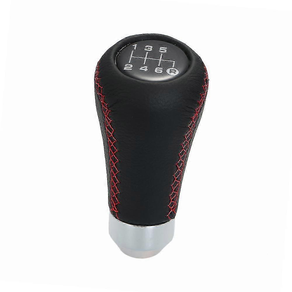 Car Manual Gear Shift Knob Shifter Black Leather Red Stitch 6 Speed Universal