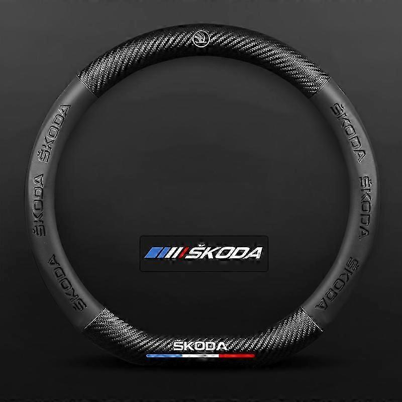Car Embossed Skoda Carbon Fiber Steering Wheel Cover for Octavia Kodiaq Rapid Kamiq Fabia Yeti Superb Karoq Rapid A5