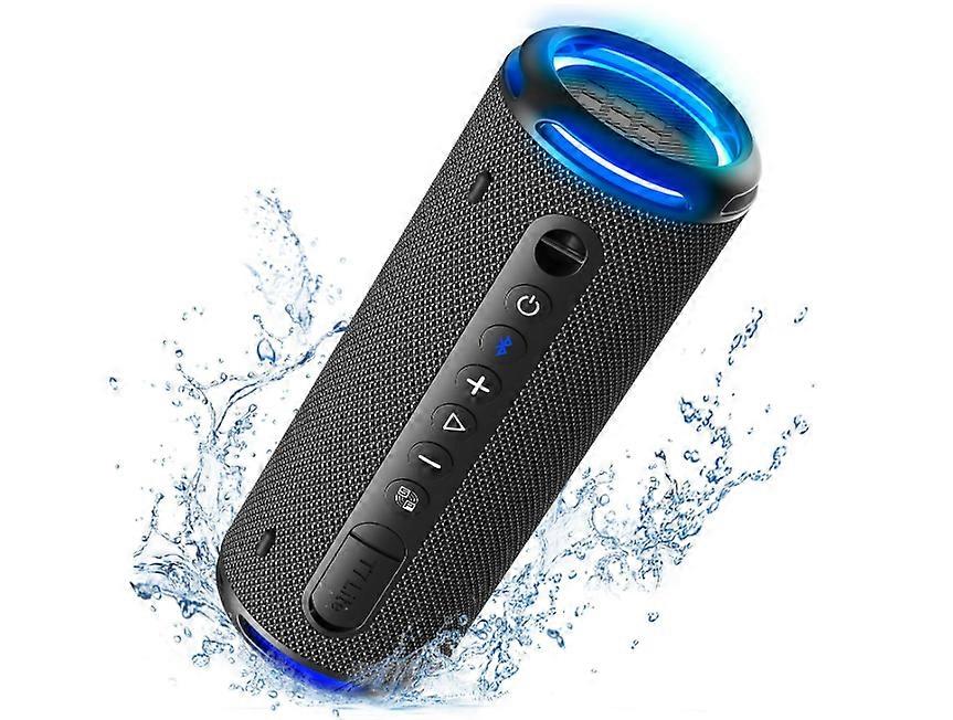Bluetooth Speaker, Enhanced Bass, Rainbow Light Show, 24H Playtime, IPX7 Waterproof, Wireless Stereo Pairing, Bluetooth 5.3(Black)