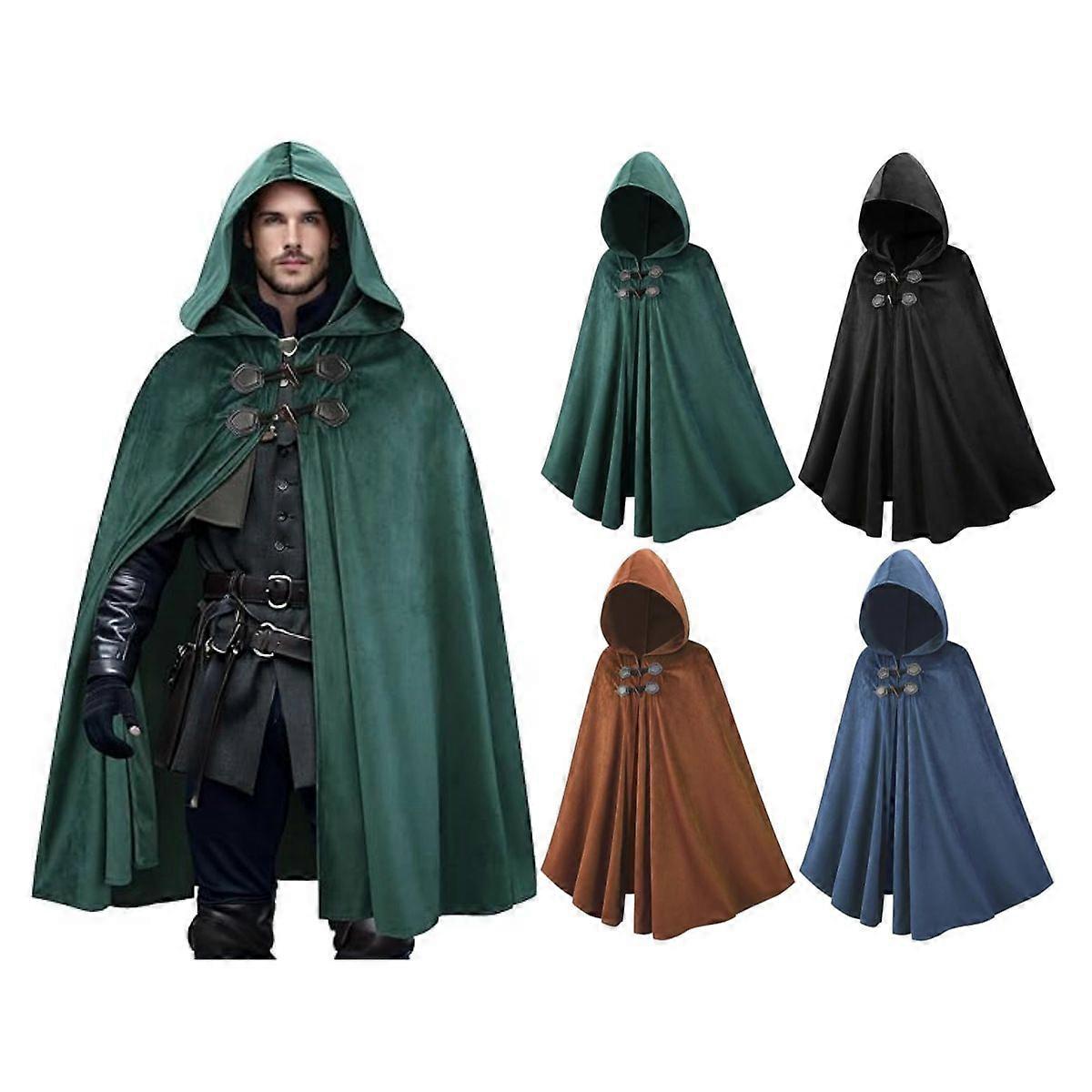 This medieval Renaissance velvet hooded cloak authentically recreates the essence of noble attire from the historical period Crafted from premium high-density velvet fabric that offers substantial weight and excellent drape, producing a distinctive sheen under lighting The adjustable hood with drawstrings provides both wind protection and enhanced immersive experience for role-playing enthusiasts Perfect for multiple occasions: Live Action Role Playing (LARP) events, Halloween costume parties, Renaissance fairs, theater performances, historical reenactments, and cosplay conventions Available in four classic color options: mystical peacock green, warm light brown, versatile black, and elegant navy blue Features refined internal construction with flat-locked seams for comfortable wear against the skin Reinforced hemming ensures durability and maintains shape through extended use Instantly completes your medieval character transformation - ideal for knights, wizards, nobles, or rangers from fantasy and historical settings