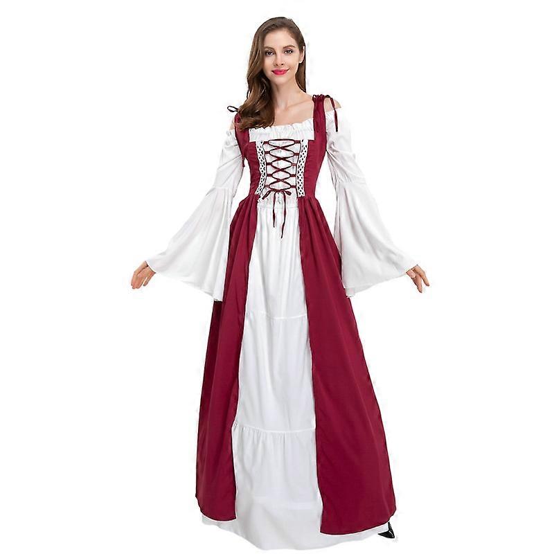 Renaissance Gothic Dress for Women Halloween Costume Off Shoulder Lace Trumpet Sleeve Dresses