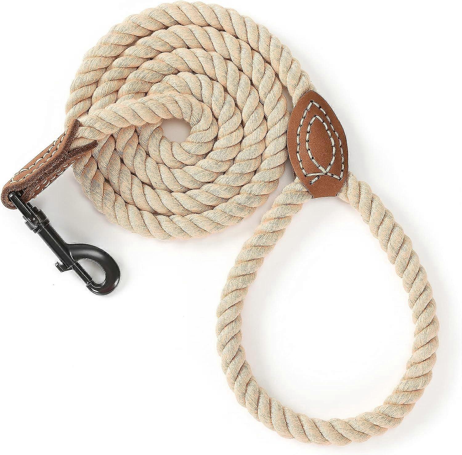BRAIDED ROPE LEASH:dog leashes feature classic braided cotton rope and tightly stitched leather tip. Elegant and sturdy cotton rope dog leash, suitable for weddings, puppy party, and walks outdoor. MATERIAL: Cotton Braided Rope, Hand-Tailor Top-layer Genuine Leather Node and Strong Metal Clasp. COMFORT GRIB:Dog Rope Leash made of leather connection offers strong and comfortable grip.