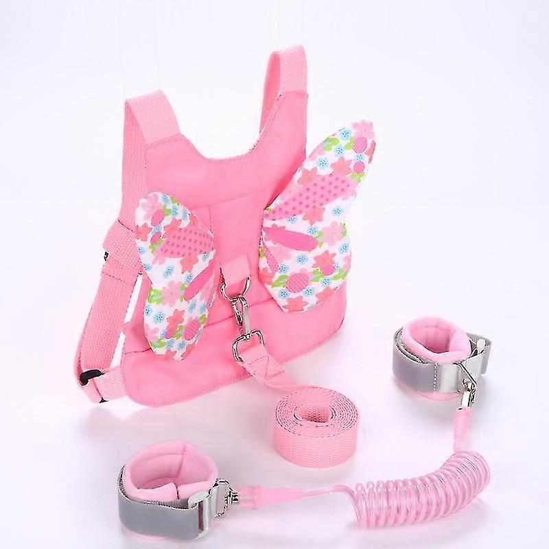 Children's Shoulder Straps+anti Loss Wrist Chains Children's Safety Belts Children's Walking Wristbands Children's Auxiliary Shoulder Straps Pink Tape