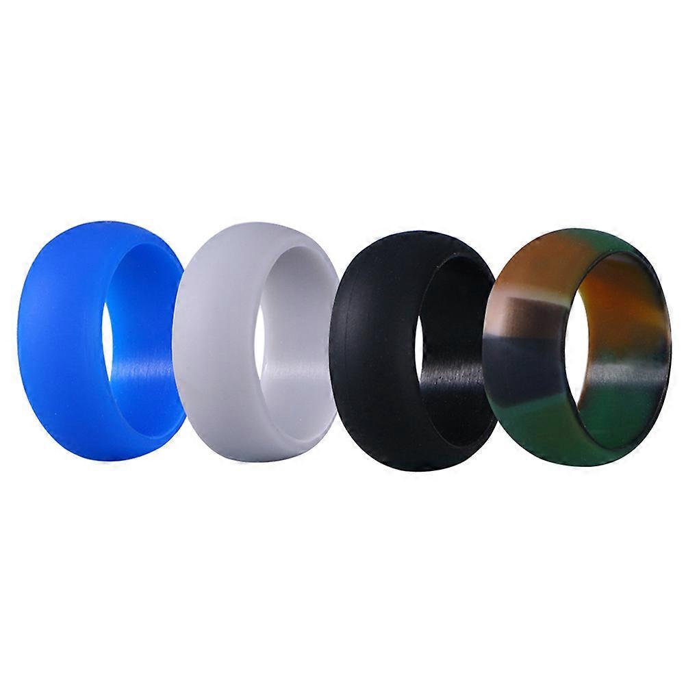 Mens Rubber Wedding Bands Damage Resistant Gym Wedding Rings For Men Black Gray Camouflage Blue 4Pcs