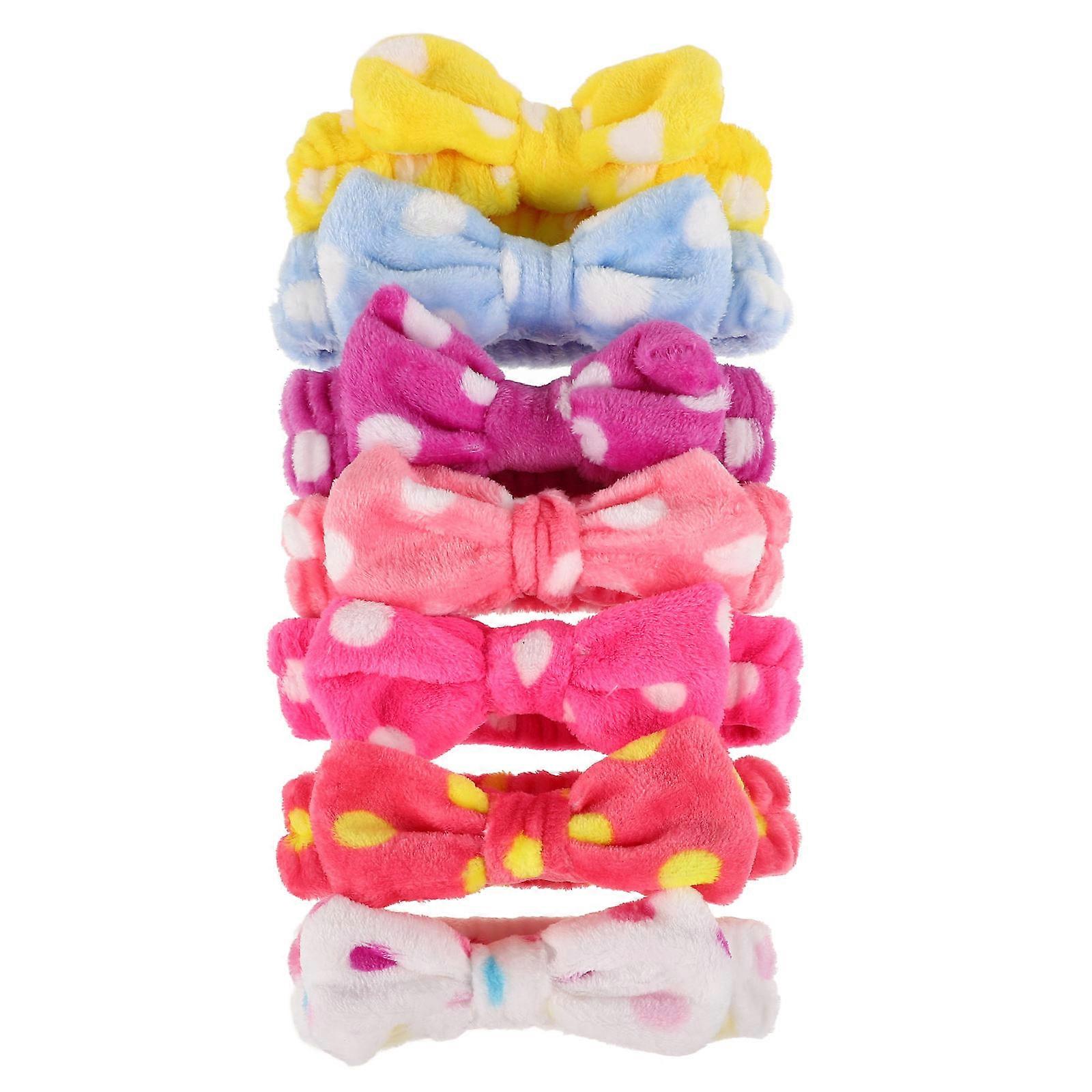 Coral Fleece Bow Hair Bands 7pcs Set for Women – Absorbent Quick Drying Elastic Headbands for Makeup, Face Washing, Spa – Mixed Colors